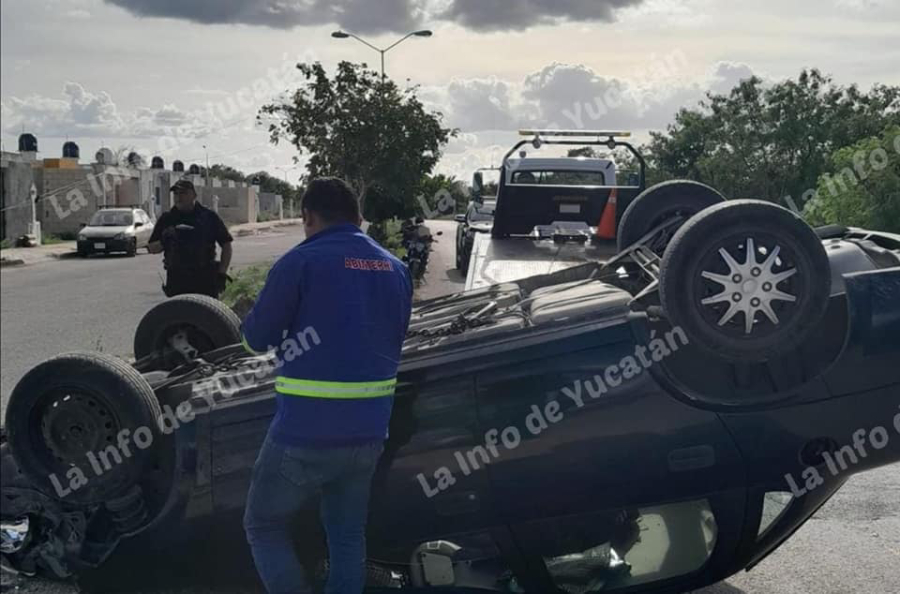 Un vehículo Chevy con placas campechanas fue hallado volcado en la calle 2-G con 47 en el fraccionamiento Puerta del Sol, en Kanasín. Del guiador nadie supo nada, pues huyó antes de que llegaran las autoridades ante los destrozos que causó.