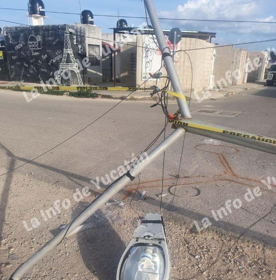 La Policía Municipal de la vecina ciudad recibió el reporte de un accidente de tránsito en dicha zona, y al llegar encontraron el auto volteado completamente de cabeza, y un poste de alumbrado público derribado desde la base.