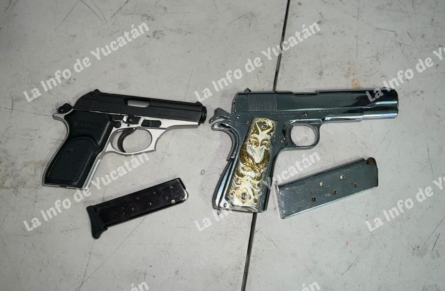 Un peligroso tipo ebrio y armado realizó disparos al aire en el fraccionamiento Privada San Felipe, en Kanasín, por lo que fue arrestado por agentes policiacos, que le aseguraron dos pistolas calibres .38 y .45.