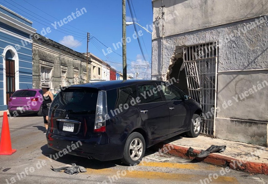Un fuerte choque de dos vehículos ocurrido en la calle 55 con 68 del Centro de Mérida la mañana de hoy, dejó no sólo daños materiales en ellos, sino que además el frente de una casa fue derribado.
