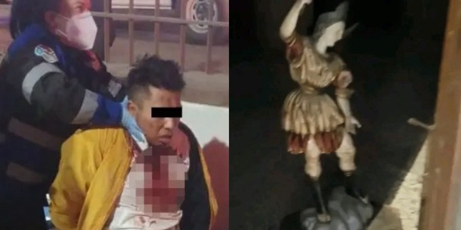 Como si fuera castigo divino, un hombre resultó con graves lesiones al tratar de robar una imagen de San Miguel Arcángel en una iglesia de Monterrey, Nuevo León.