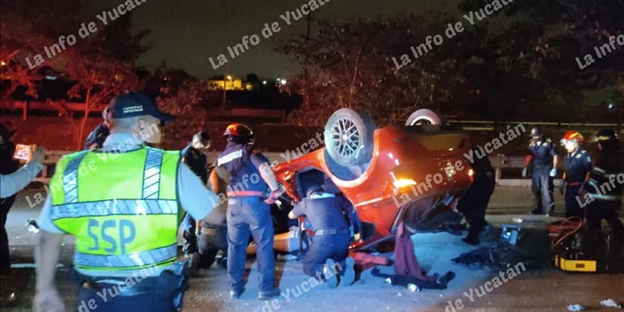 Por el golpe, realizó el conductor una brusca maniobra a la izquierda que lo hizo volcar hasta quedar totalmente de cabeza, ya en la subida del puente en la salida a Motul.