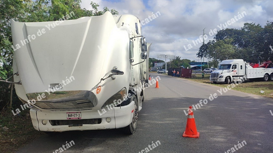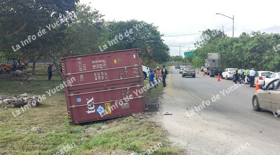 Los hechos ocurrieron esta mañana cuando el tráiler de la empresa “Logística en Punto” avanzaba de norte a sur sobre la carretera que une Mérida con el puerto, y al acercarse al Periférico de la capital el operador tomó la curva para circular sobre la lateral y dirigirse al poniente.
