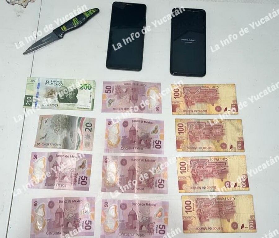 Se le decomisó el dinero, los celulares y el cuchillo, pidiéndose al afectado interponer su denuncia. El ladrón no pudo evitar que se le salieran las lágrimas, pero ni así recibió piedad por sus delitos cometidos.
