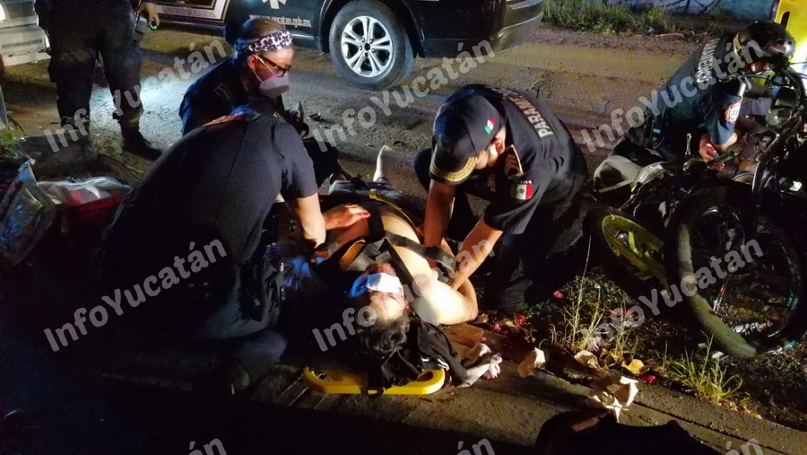 La calle 127 con 80-A de la colonia San Antonio Xluch se llenó anoche de paramédicos que atendieron de urgencia a dos motociclistas que chocaron de frente y quedaron severamente lesionados. Ambos fueron llevados a hospitales.