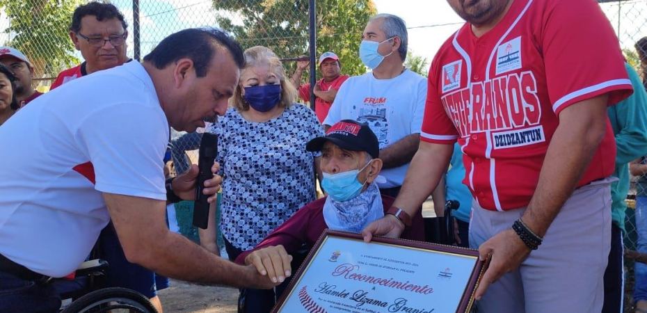 Como parte de un homenaje, el pasado domingo se realizó la entrega de reconocimientos y la develación de los números de la camiseta de dos grandes softbolistas de Dzidzantún: Jorge García Santana (+) y Hamlet Lizama Graniel.