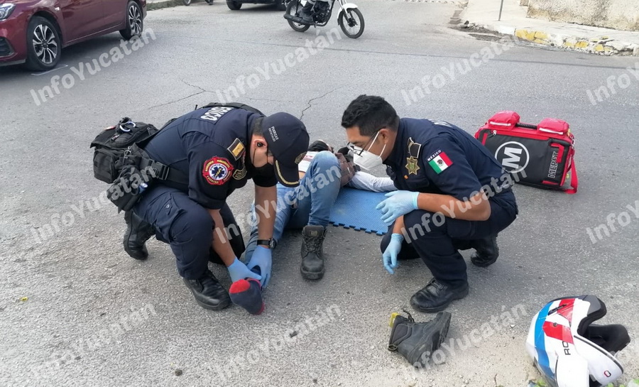 El motociclista cayó al pavimento y se quejaba de fuertes dolores, así que la automovilista llamó de inmediato al 9-1-1, llegando al lugar agentes policiacos que tomaron nota de lo ocurrido, arribando además paramédicos que atendieron al hombre.
