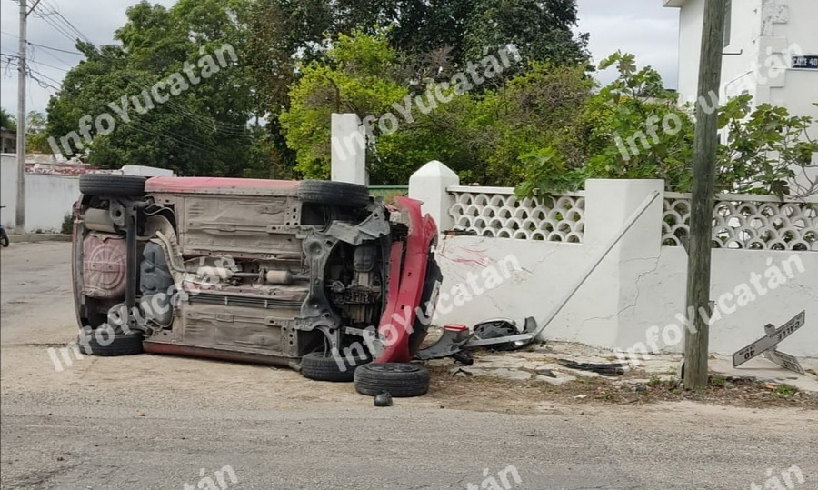 Aparatosa volcadura de un March se dio en la calle 40 con 27 de la colonia Jesús Carranza, luego de que el guiador perdiera el control del volante tras chocar contra un Peugeot que se le atravesó.