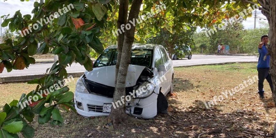 Por esquivar a un menor de edad que se le atravesó en bicicleta, el guiador de un auto Tiida dio un fuerte volantazo sobre la avenida Cronista Deportivo de Ciudad Caucel, y se metió al camellón hasta estrellarse con un árbol de almendra.