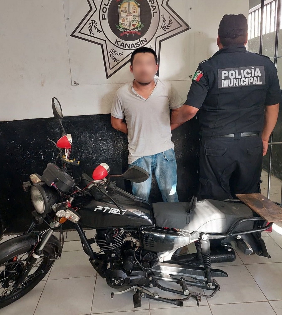 Edwin Rodrigo C.C., de 27 años de edad, fue detenido por agentes de la Policía Municipal de Kanasín, al ser sorprendido desvalijando una moto con reporte de robo, en montes del fraccionamiento Gran San José.