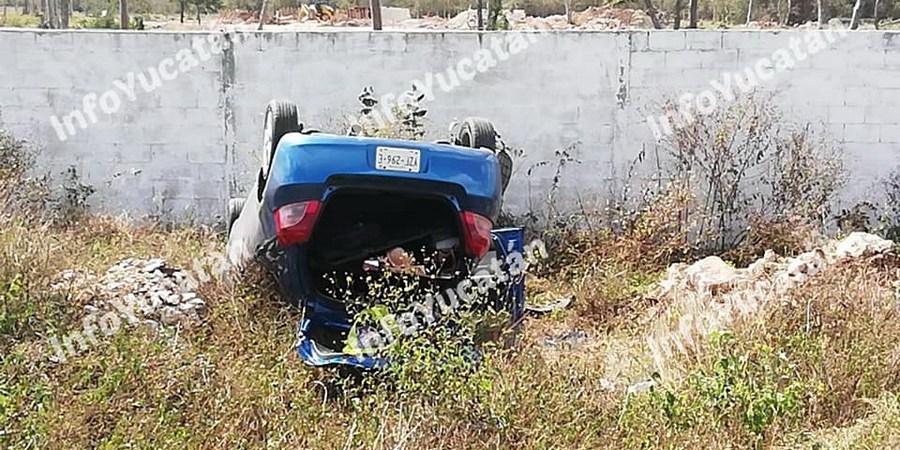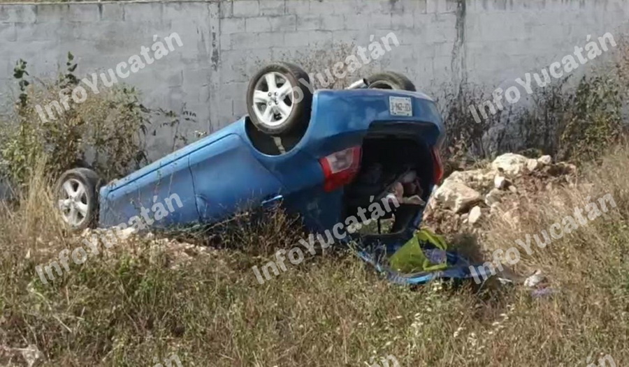 De cabeza y fuera de camino quedó un vehículo cuya guiadora perdió el control al manejar sobre la carretera Mérida-Tetiz, a la altura del kilómetro 4. A pesar de lo aparatoso del percance, la mujer logró salir por propio pie y sufrió apenas golpes leves.