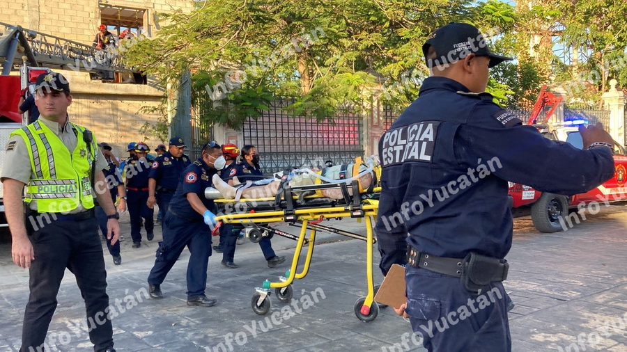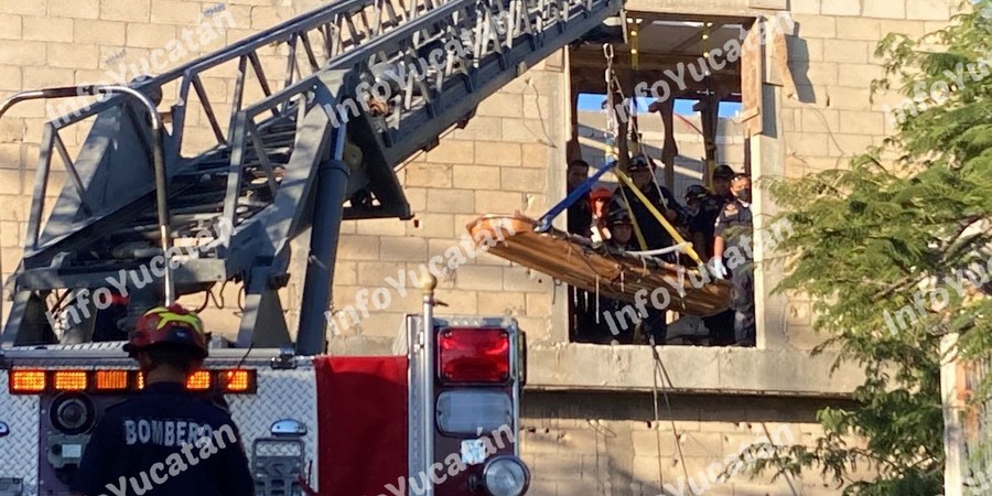 Bomberos de la SSP rescataron a un albañil que quedó inconsciente luego de caer al techo de un segundo piso en una construcción de la calle 59 entre 82 y 84 de Mérida, muy cerca del parque del Centenario.
