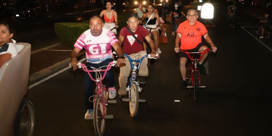 Este sábado se celebró el séptimo aniversario de la Bici-ruta Nocturna, programa que surgió el 5 de marzo de 2016 ante el éxito que representa su versión dominical, y con el objetivo de ofrecer a todas las familias un entorno diferente de una de las vialidades más representativas de la ciudad de Mérida: el Paseo de Montejo.
