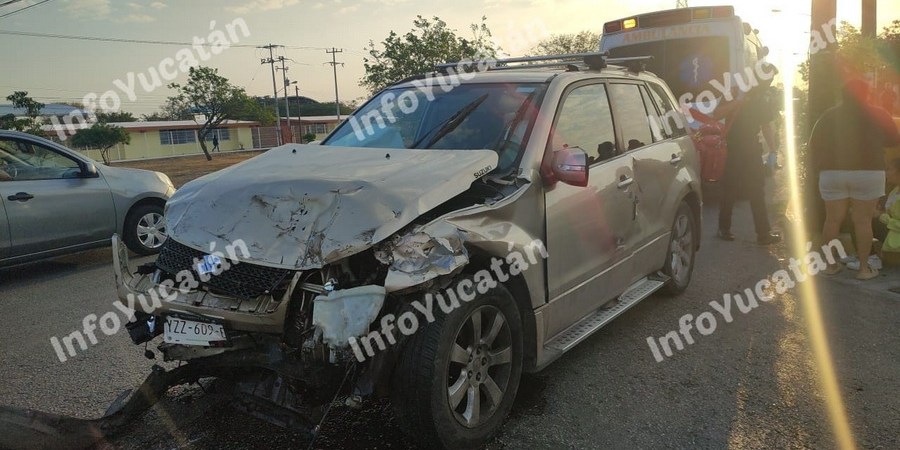 Cuatro lesionados, incluyendo dos niñas que eran llevadas a la escuela, fue el saldo de un fuerte choque con carambola incluida entre tres vehículos, ocurrida esta mañana en la calle 59 con 106 de Ciudad Caucel.