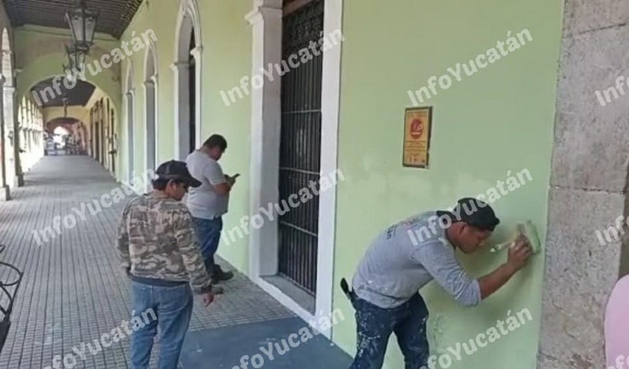 #MÉRIDA Manifestantes encapuchadas grafitearon anoche el Palacio de Gobierno, en el corazón de la capital yucateca, como parte de la marcha para conmemorar el Día Internacional de la Mujer, y esta mañana trabajadores del Ejecutivo se dieron a la labor de pintar de nuevo en color verde las paredes del recinto.
