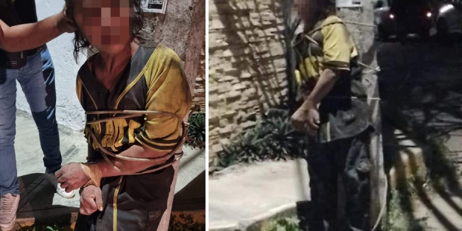 Los vecinos acudieron en su auxilio y sometieron al intruso, lo amarraron a un poste de concreto y pidieron el apoyo de la Policía. Agentes municipales llegaron posteriormente y se llevaron al tipo a la comandancia.