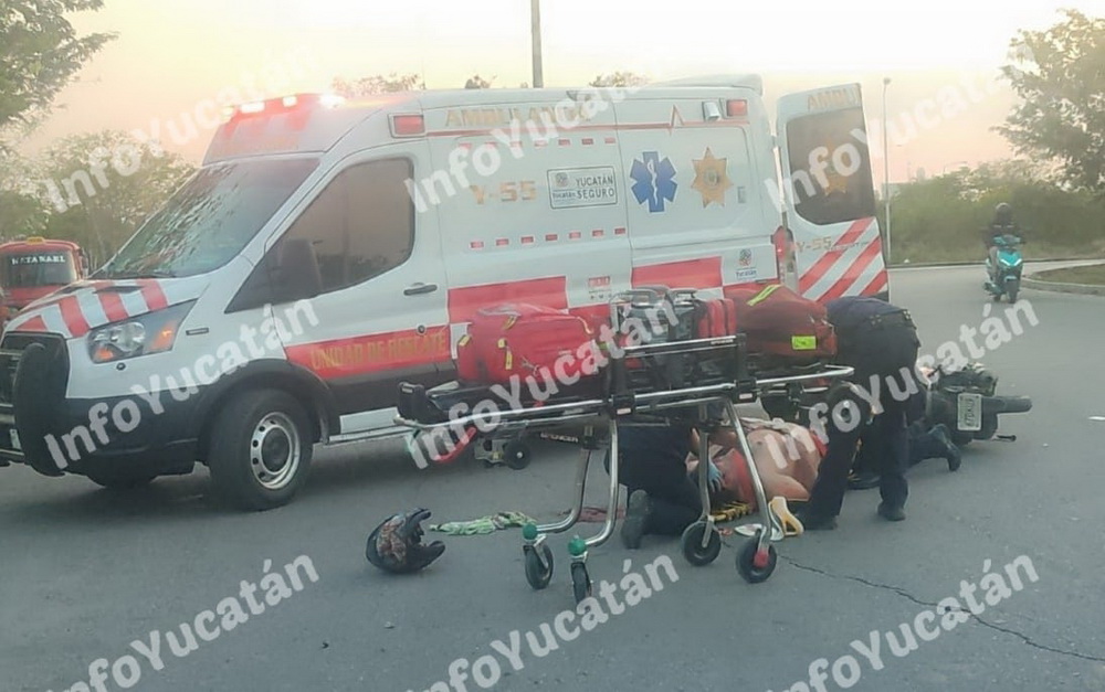 Quedó gravemente herido un motociclista que la tarde de ayer fue atropellado por un vehículo de color blanco en la glorieta conocida como “Las Palmeras” en la calle 114 con 31 de Ciudad Caucel.