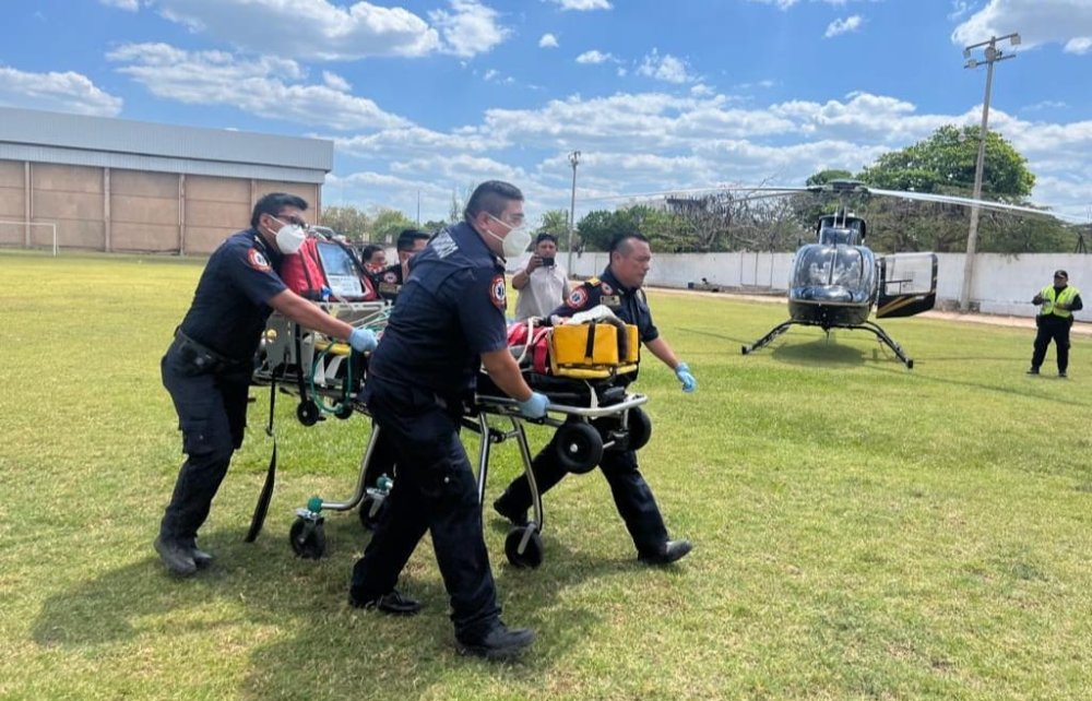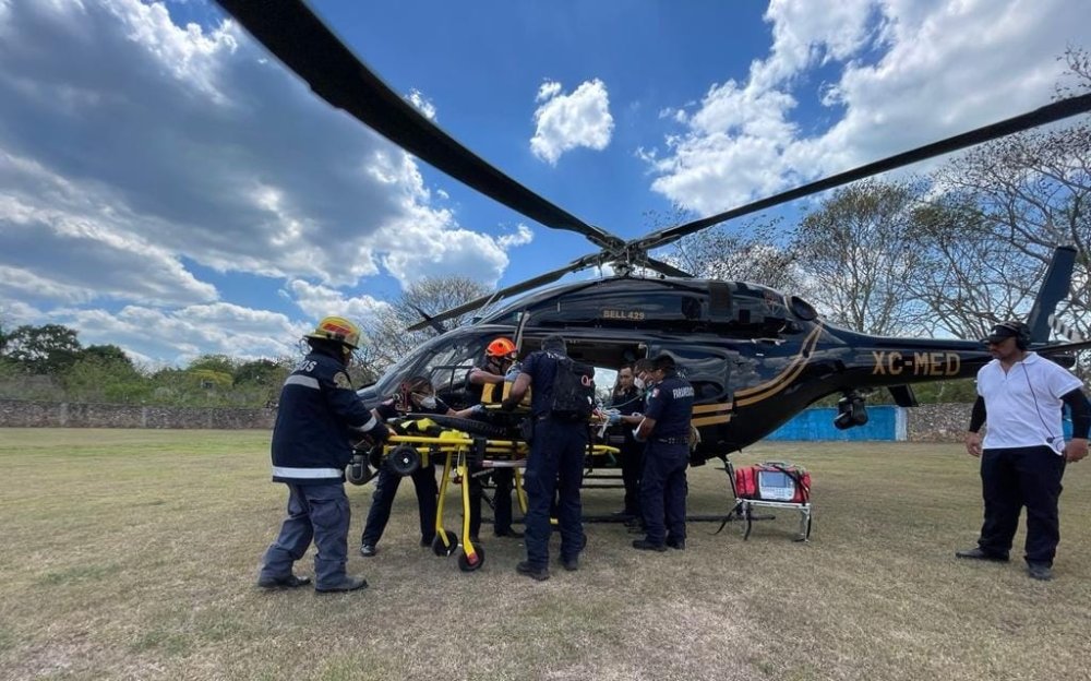Los helicópteros Bell-427 y Bell-429 del Gobierno del Estado trasladaron a Mérida a tres menores de edad gravemente lesionados en un accidente vehicular ocurrido este mediodía en la carretera federal Kantunil-Holcá.