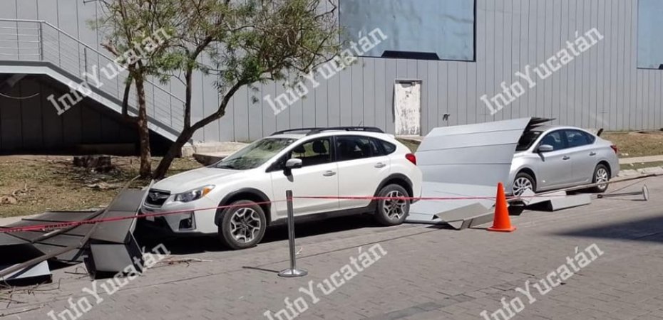 Dos autos y una camioneta estaban detenidos al lado de la parte trasera de la Plaza, en la avenida 15, cuando de pronto los mencionados paneles se vinieron abajo y cayeron sobre ellos, quedando con daños aparatosos. Un Aveo fue el más perjudicado ya que se le destrozó el cristal trasero.