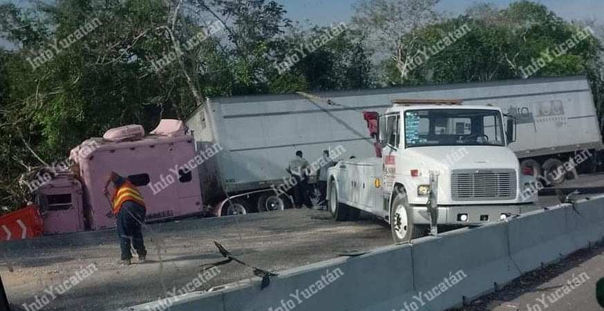 Fue sobre la carretera Mérida-Valladolid en donde la madrugada de hoy se accidentó un tráiler conocido como “La Pantera Rosa”, el cual se salió de camino, se metió a la maleza y quedó con daños materiales. Su guiador salió ileso.