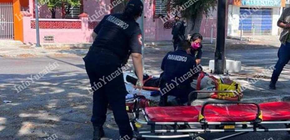 Paramédicos de la SSP atendieron y mandaron al hospital a un compañero motociclista suyo que chocó contra una camioneta en la avenida Itzaes con calle 41 del segundo cuadro de Mérida.