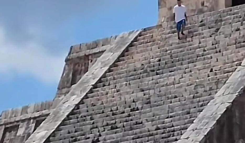 En la grabación mencionada se observa a un hombre de camisa blanca y shorts azul que luego de burlar los filtros de seguridad de la pirámide, desciende recibiendo abucheos e insultos de otros visitantes que sí respetan las reglas.