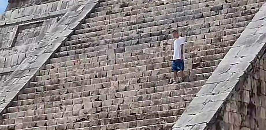 En la grabación mencionada se observa a un hombre de camisa blanca y shorts azul que luego de burlar los filtros de seguridad de la pirámide, desciende recibiendo abucheos e insultos de otros visitantes que sí respetan las reglas.
