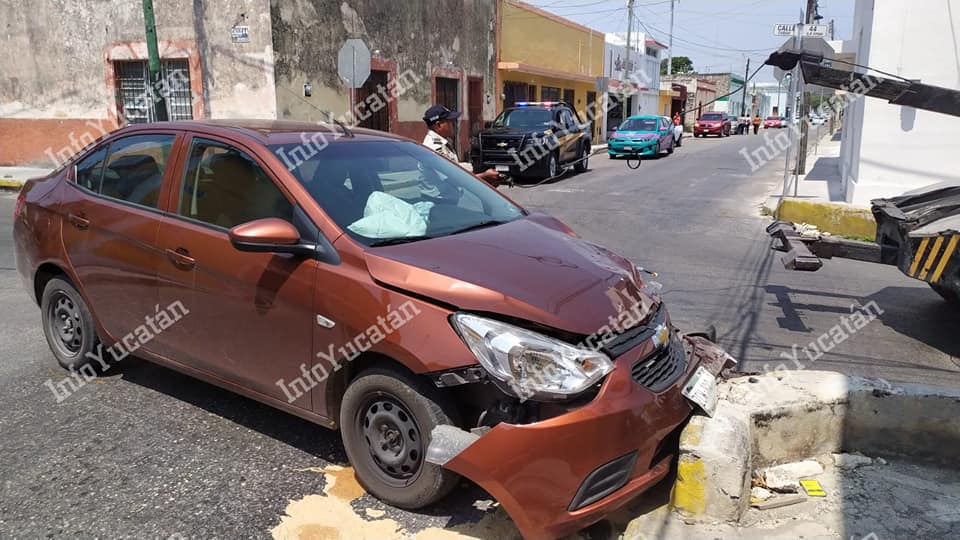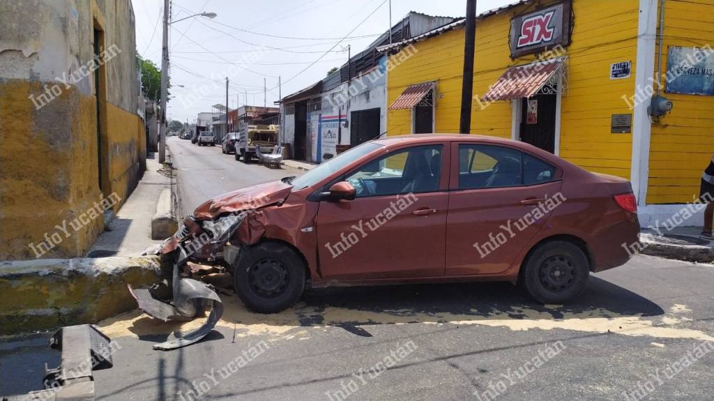 Ésta avanzaba sobre la calle 71 hacia el oriente, y al llegar a la esquina de la 44 la persona al volante no respetó la señal de alto, invadió la preferencia y se dio de frente contra el costado izquierdo delantero de un Aveo, cuyo guiador perdió el control del volante y se estrelló contra un pequeño muro de contención en la banqueta de la esquina.