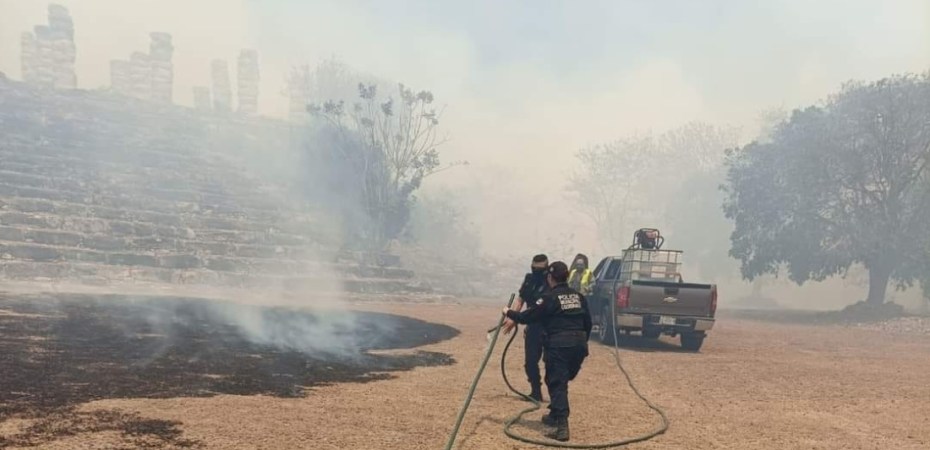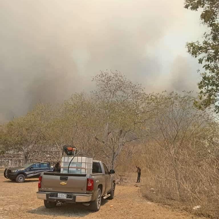 Un incendio de maleza en la zona arqueológica de Aké, perteneciente a Tixkokob, puso en alerta a los habitantes de los sitios cercanos por la gruesa columna de humo que generó este hecho.