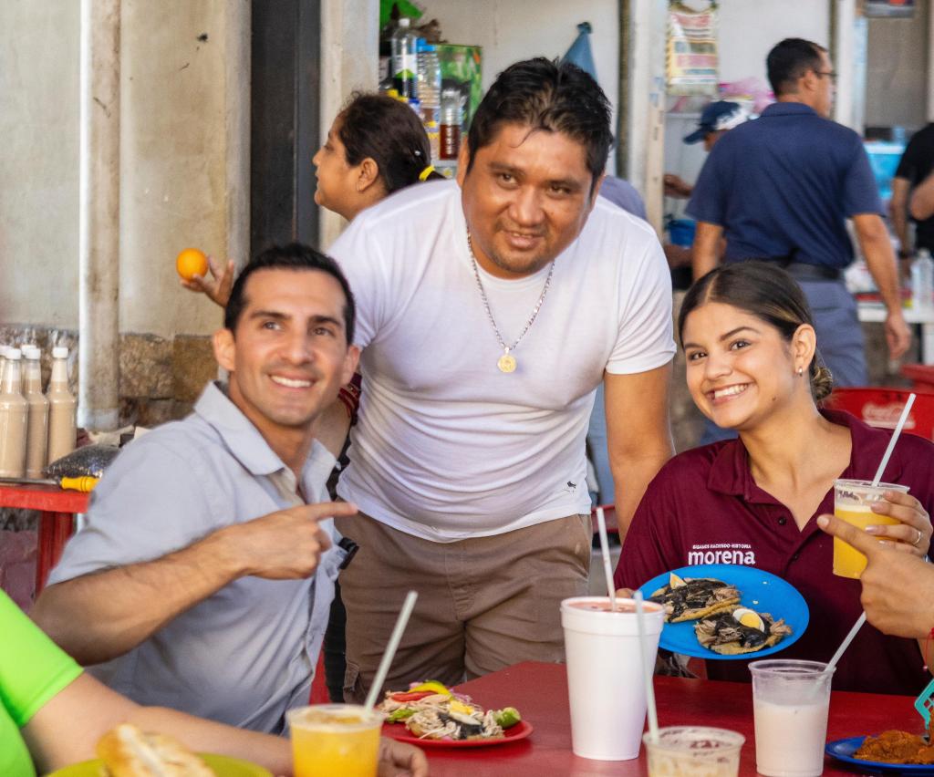 Posteriormente, Rommel se trasladó a la colonia Chuburná, para saludar a los vecinos, mujeres, hombres trabajadores, y transeúntes de las inmediaciones el mercado de Chuburná, en donde aprovechó para desayunar y platicar con los locatarios.