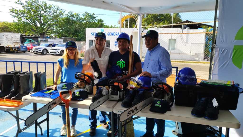 Esta mañana, en la dirección de Servicios Públicos Municipales, saludó a todos y cada uno de los trabajadores, luego hizo la entrega simbólica de insumos de trabajo y equipamiento, y atendió directamente la necesidad de uniformes de trabajo que demandaban los chambeadores.