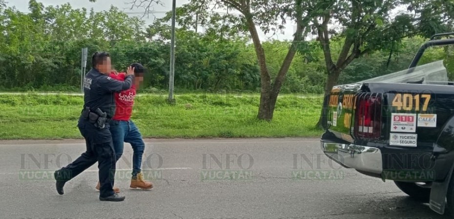 Esta mañana, agentes de la SSP arrestaron en la zona sur del Periférico a un sujeto que minutos antes robó un tractocamión estacionado al lado de una gasolinera cerca de la salida a Umán.