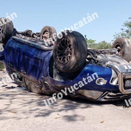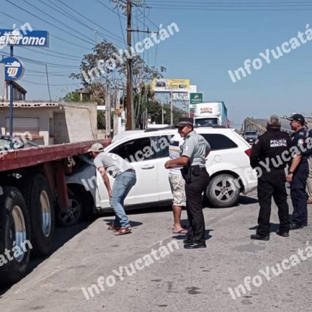 Camioneta queda incrustada en plataforma de tráiler en la Mérida-Valladolid