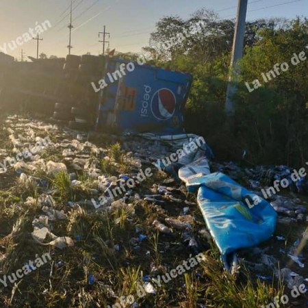 Vuelca camión de Pepsi en carretera. Rapiña no se hizo esperar