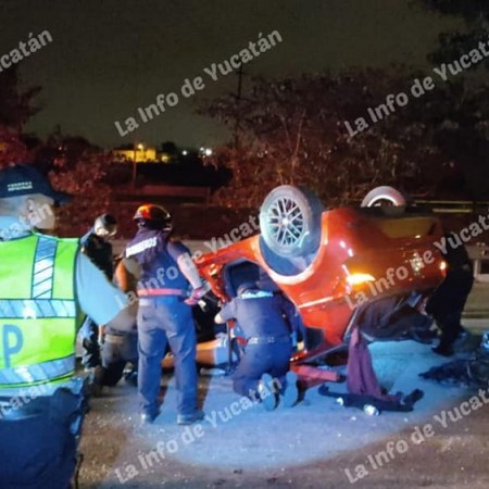 Jóvenes quedan atrapados en auto volcado en Periférico