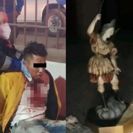 15 de enero de 2023 infoyucatan Roba imagen de San Miguel Arcángel y su espada se le clava en la garganta