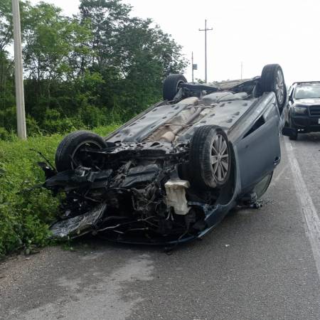Volcadura en la Mérida-Motul lesiona a madre e hija